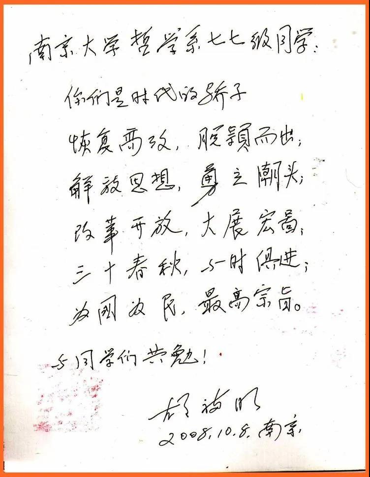 (胡福明老师寄语77级学生)