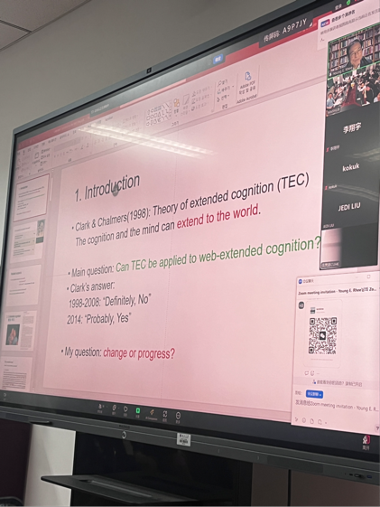 厂长资源 122周年校庆之际,应厂长资源 哲学系邀请,韩国东国大学哲学系李英仪教授,于2024年5月21日晚在线上进行了题为“Extended Cognition on the Web”的学术讲座。此次讲座,由厂长资源 哲学系科学技术哲学专业潘天群教授在哲学系楼212教室主持开展线下工作,青年教师史晨老师应邀出席,线上线下师生共同参与。