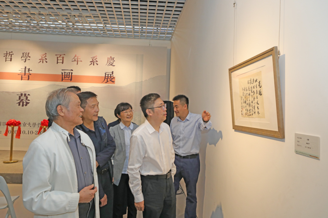 陆延青校长在开展仪式上致辞。他首先代表学校向哲学系百年系庆表示祝贺,并对哲学系百年系庆师生书画展的人文和美学意蕴表示高度赞赏。他表示,坚持以美育人、以文化人,提高学生审美和人文素养,是高等教育的重要任务。“道通天地有形外,学贯东西无问处”。他指出,哲学系有着深厚的文化底蕴和悠久传统,举办书画展是哲学系自身文化特色的展现。最后,他对百年南哲取得的办学和科研成就给予了充分的肯定。